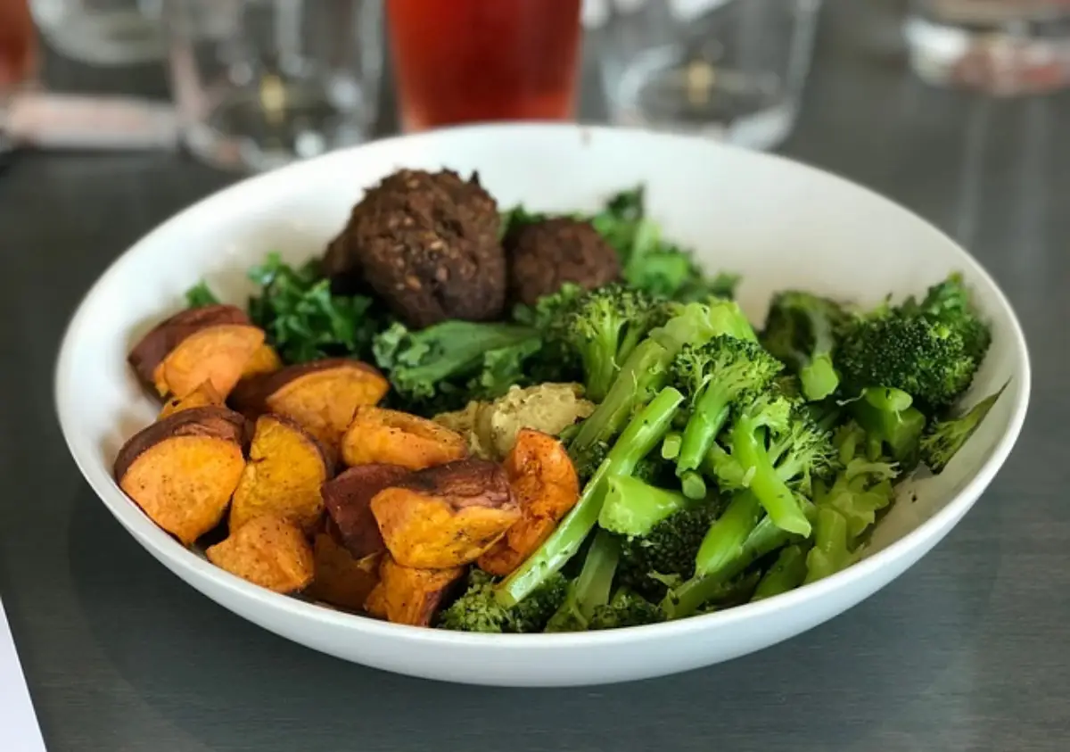 삶은 고구마와 각종 야채를 섞어 만든 샐러드로, 포만감과 영양이 풍부한 한 끼 식사로도 좋습니다.