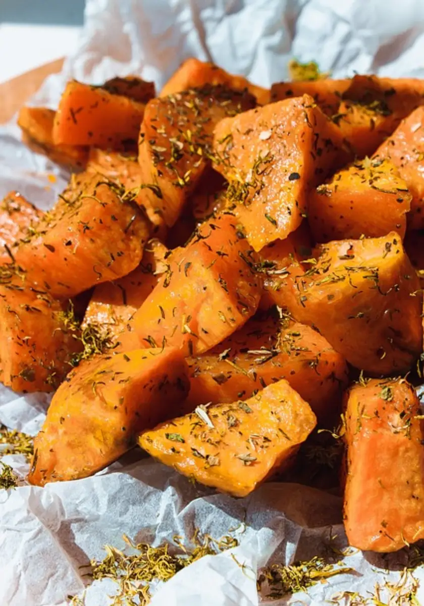 고구마를 오븐이나 에어프라이어에 구워 자연스러운 단맛을 즐기는 간단한 요리입니다.