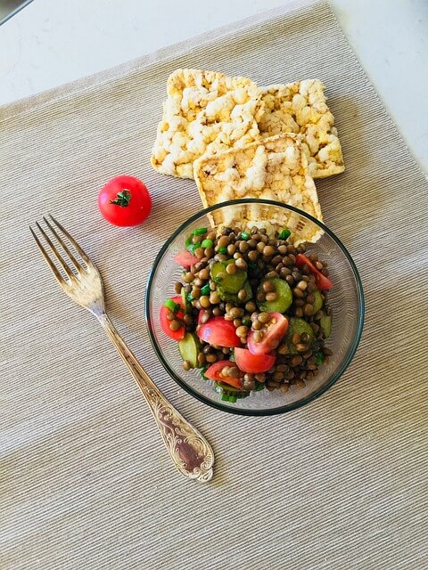 - 재료 : 렌틸콩, 각종 채소(오이, 토마토, 피망 등), 올리브 오일, 레몬주스, 소금, 후추