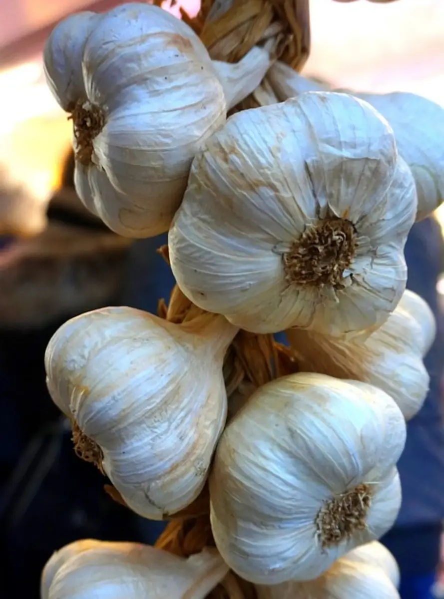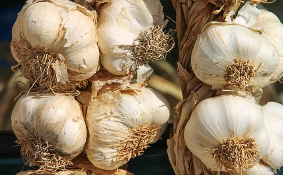 잎이 노랗게 변하면서 마늘의 성장이 끝나면 땅에서 마늘을 캐내어 2~3주 동안 건조시킵니다.